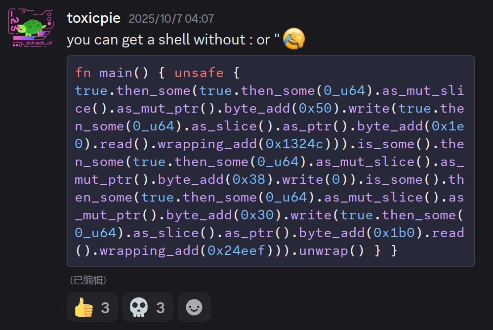 最后发现可以通过 std::fs::read("flag.txt").unwrap().get(i32).unwrap().clone() as i32