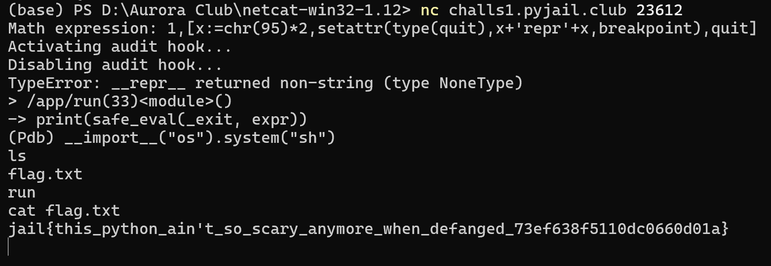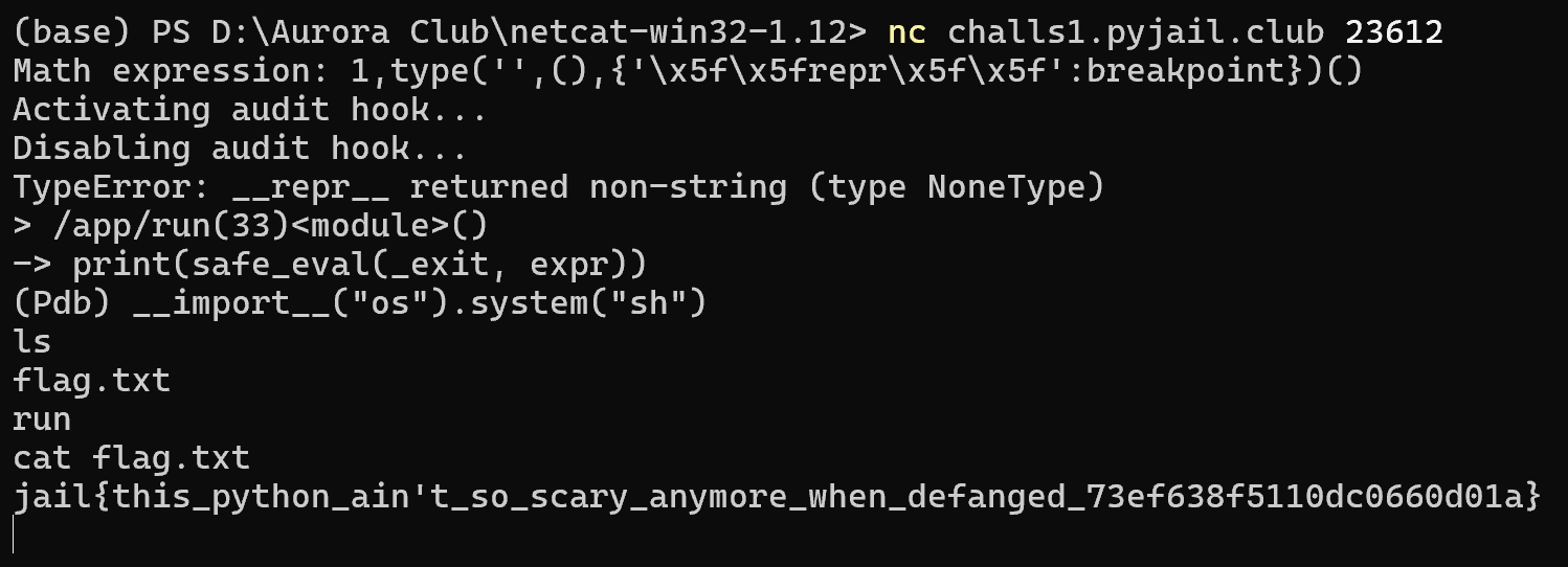 TARGET_HOST = 'challs2.pyjail.club' # 替换为实际靶机 host